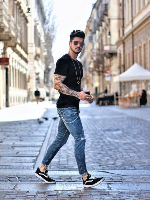 Uma dica bem massa para dar um UP no Visual Básico também é a questão das Dobras nas Peças, SIM, a dobra na Barra da Calça, na Manga da Camisa ou da Camiseta pode ser aliada pro nosso dia a dia! Se o caimento das Peças estiver OK, esses detalhes em Dobras podem alinhar ainda mais o Shape do Visual, equilibrar MUITO bem a Produção, incluindo detalhes que complementam o look no geral. E também não o deixam ficar sem Graça. Podem experimentar! 2 ou 3 dobras vão mudar a estética dos seus Looks quem usa essa Dica no dia a dia.